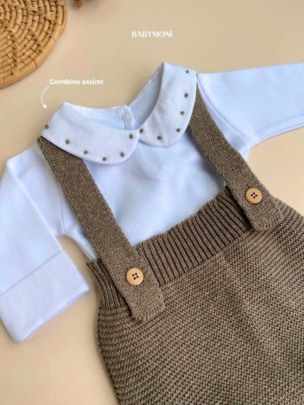 Bloomer de tricô com alças estilo suspensório cruzadas nas costas trazendo um charme especial para o look!