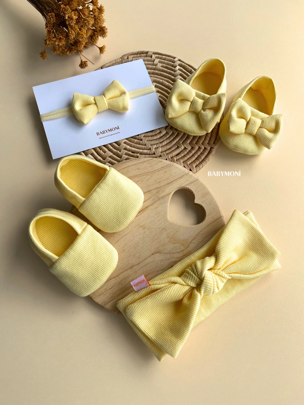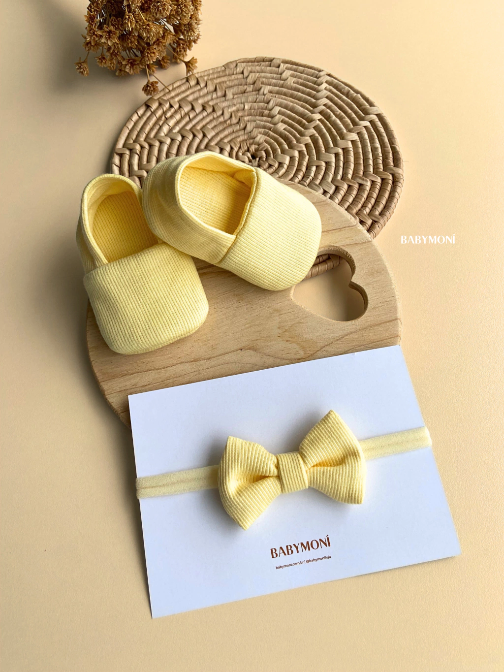 1 Faixa de meia de seda amarela com Laço Canelado amarelo