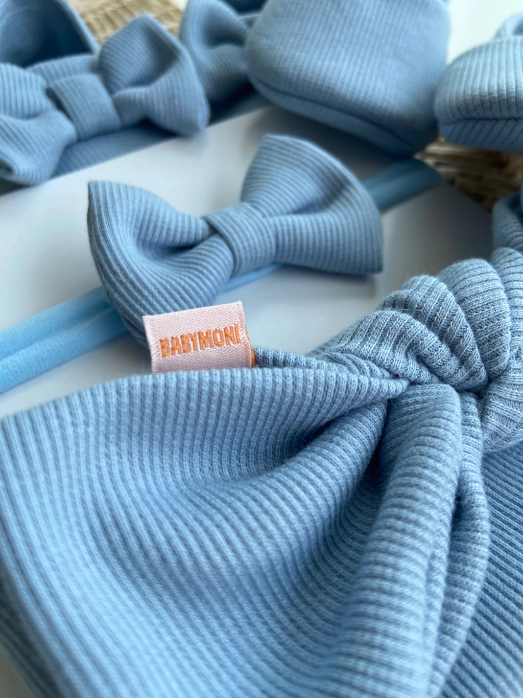 Laço feito de moletinho canelado e faixa de meia de seda, o conforto e estilo estão garantidos.