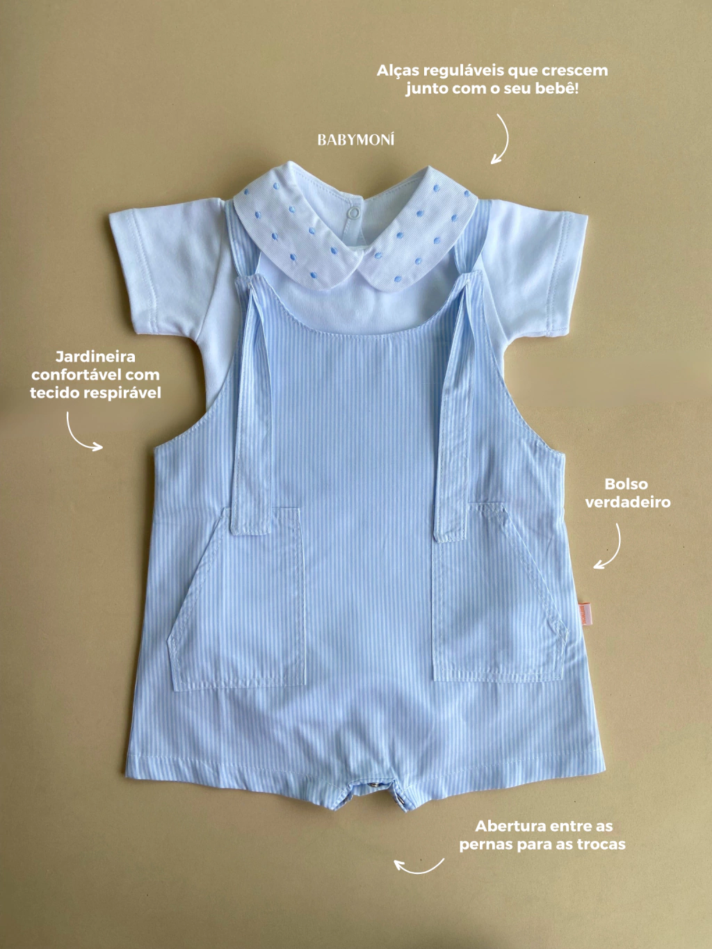 Jardineira unissex e super confortável! 100% de algodão, levíssima, garantindo a respiração da pele do seu bebê!