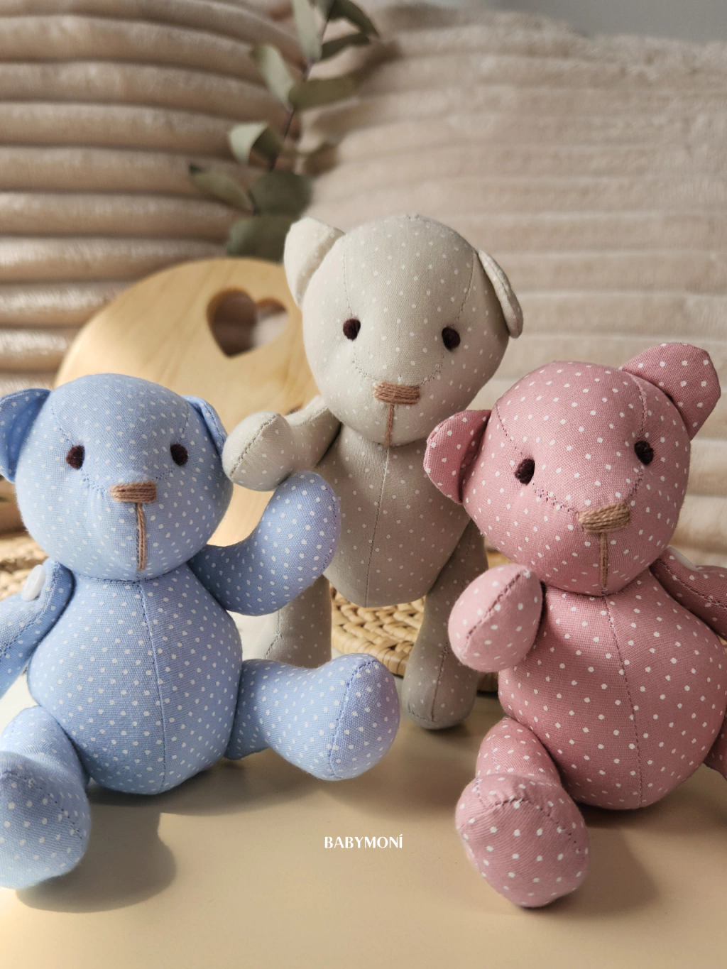 Nossos Mini Ursinhos BM® são feitos em tecido 100% algodão, com estrutura firme e acabamento delicado, perfeitos para decorar o quartinho do bebê ou complementar qualquer presente.