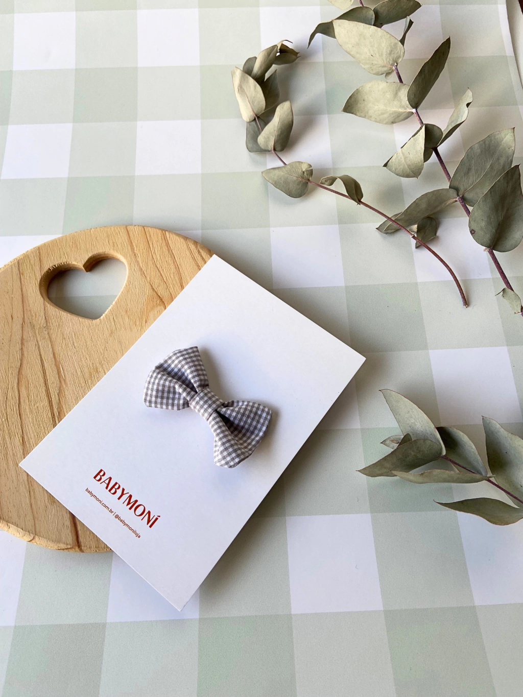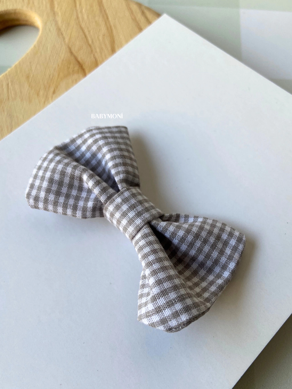 1 Presilha forrada com laço de tecido xadrez cinza