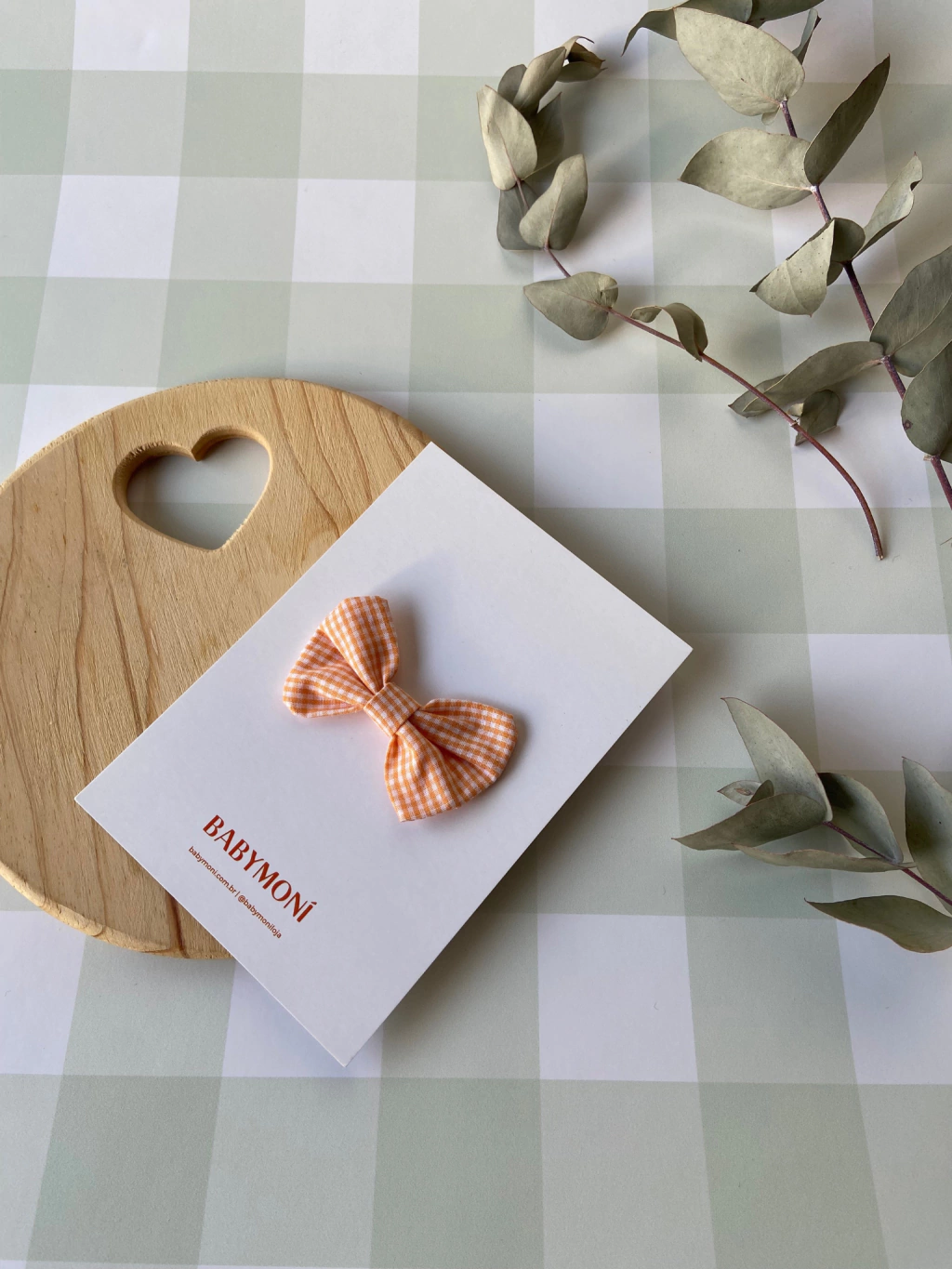 Nossa Presilha Xadrez Laranja Bebê BM® é feita com tecido macio e confortável, aplicada na presilha forrada que não machuca e garante um caimento impecável.